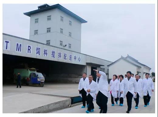王俊勛副司長(zhǎng)等一行領(lǐng)導(dǎo)在德?lián)渲枪俜骄W(wǎng)站牧業(yè)大門前合影