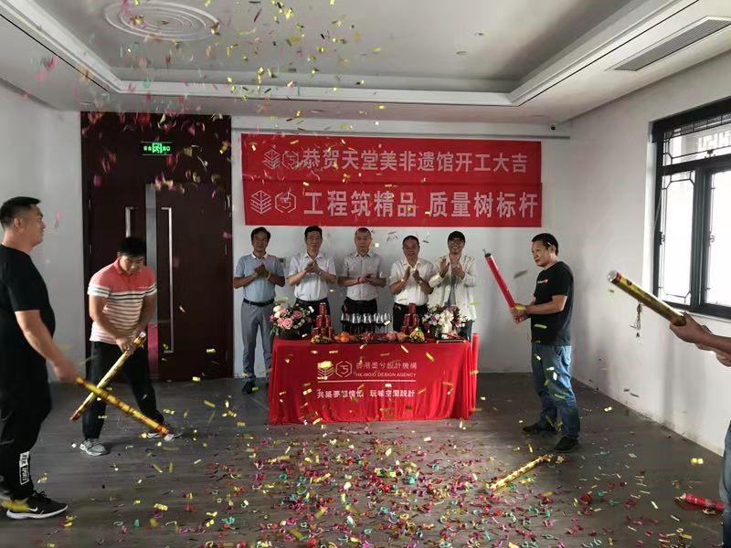 ? ? ? ?2019年9月19日上午8時58分,蘇州“天堂美非遺館”開工儀式在太湖書院隆重舉行,天堂美非遺館是太湖書院“一園六館”建設中具有代表性的展示場館,該場館于2019年9月19日開工,10月30日竣工,特聘請香山幫傳統(tǒng)建筑營造技藝國家級非物質文化遺產傳承人陸耀祖大師為總指導,多名市、區(qū)級代表性傳承人參與共同建設,建成后將成為“香山幫傳統(tǒng)建筑營造技藝”傳承基地內具有代表性的精品展館。