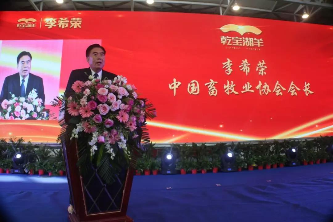 中國畜牧業(yè)協(xié)會會長李希榮致辭,并表示本次德?lián)渲枪俜骄W(wǎng)站湖羊品牌推介會,是企業(yè)品牌化思維的體現(xiàn),德?lián)渲枪俜骄W(wǎng)站湖羊品牌的唱響,也將為我國羊肉自主品牌發(fā)聲發(fā)力。