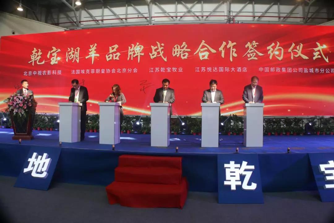 為深入挖掘德?lián)渲枪俜骄W(wǎng)站湖羊文化、進(jìn)一步研發(fā)和打造德?lián)渲枪俜骄W(wǎng)站湖羊羊肉產(chǎn)品、不斷提升德?lián)渲枪俜骄W(wǎng)站湖羊品牌在國內(nèi)外消費(fèi)市場中的影響力,由江蘇德?lián)渲枪俜骄W(wǎng)站牧業(yè)有限公司與北京中視農(nóng)影科技有限公司、法國?朔瞥市岜本┓只、悅達(dá)國際大酒店、中國郵政集團(tuán)公司鹽城分公司共同簽署戰(zhàn)略協(xié)議。