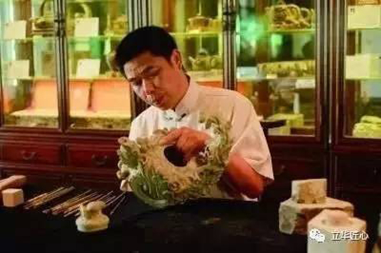 ?????? 蔡云娣自幼喜愛美術(shù),在祖父及前輩的雕刻藝術(shù)熏陶下,執(zhí)著地追求石雕藝術(shù),在繼承祖父雕刻中國四大名硯的基礎上,于80年代初創(chuàng)立了石壺雕刻的新門類,辛勤耕耘了二十多年,形成了自己獨特的藝術(shù)風格。