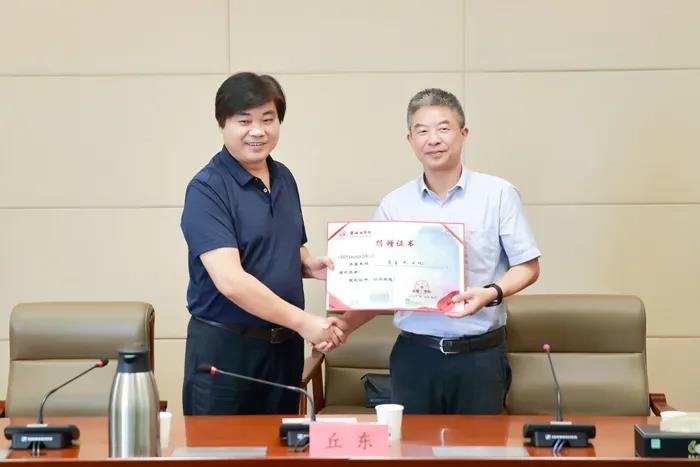 捐贈(zèng)儀式上,后勤服務(wù)集團(tuán)負(fù)責(zé)人代表學(xué)校接受江蘇德?lián)渲枪俜骄W(wǎng)站生物科技有限公司的捐贈(zèng),宋長(zhǎng)春向江蘇德?lián)渲枪俜骄W(wǎng)站生物科技有限公司發(fā)放捐贈(zèng)證書。