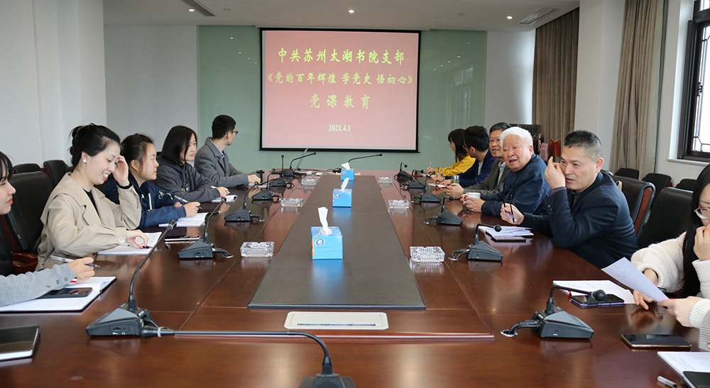 為深入學(xué)習(xí)習(xí) 近平總書記在黨史學(xué)習(xí)教育動員大會上的講話精神,認(rèn)真貫徹落實(shí)中央和省委、市委、以及市社會組織黨委關(guān)于黨史學(xué)習(xí)教育活動的實(shí)施方案,4月1日上午,太湖書院黨支部開展“黨的百年輝煌——學(xué)黨史,悟初心”學(xué)黨史專題教育活動,由黨史學(xué)習(xí)教育市委宣講團(tuán)成員、蘇州科技大學(xué)馬克思主義學(xué)院教授王建明同志進(jìn)行宣講,原黨支部書記丘亮輝、新一屆黨支部書記劉斌,以及支部黨員和入黨積極分子踴躍參加。