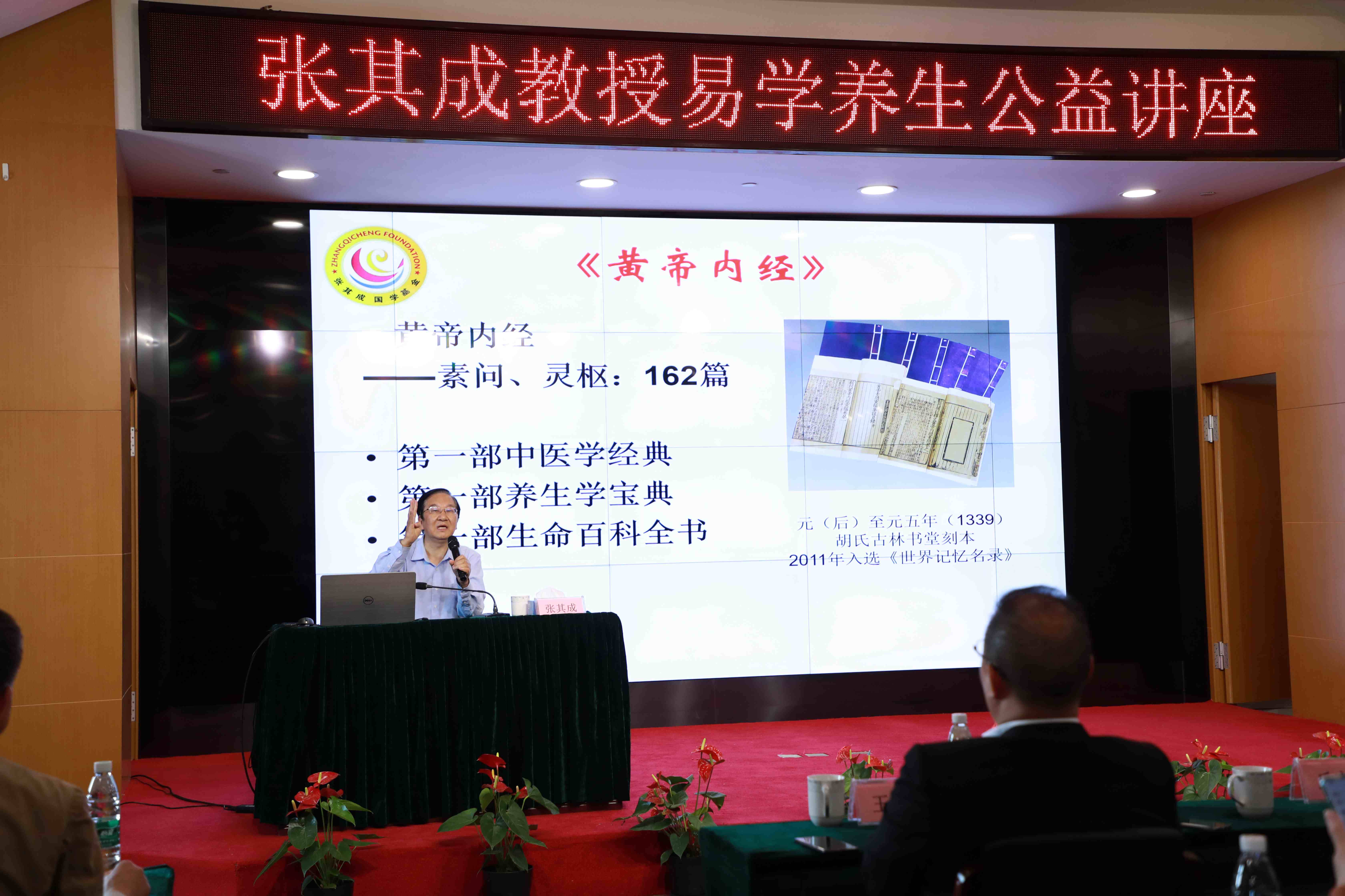 2021年4月26日下午,由蘇州太湖書院與蘇州市老科技工作者協(xié)會、北京張其成國學基金會聯(lián)合主辦的、全國著 名的國學與養(yǎng)生專家、中醫(yī)文化學家張其成教授主講的《黃帝內(nèi)經(jīng)養(yǎng)生智慧》公益講座,以線下報告和線上直播兩種方式在蘇州太湖書院大講堂成功同步開講。出席本次公益講座的嘉賓有中宣部原常務(wù)副部長龔心瀚、蘇州市老科技工作者協(xié)會常務(wù)副會長姜左、蘇州太湖書院山長丘亮輝、太湖書院理事長王躍程等領(lǐng)導(dǎo),以及來自蘇州市老科技工作者協(xié)會、蘇州科技大學、蘇州市吳中區(qū)教育局等社會各界的國學文化與中醫(yī)養(yǎng)生愛好者近百人參加了線下講座,有1500余人觀看了太湖書院嗶哩嗶哩平臺線上講座。