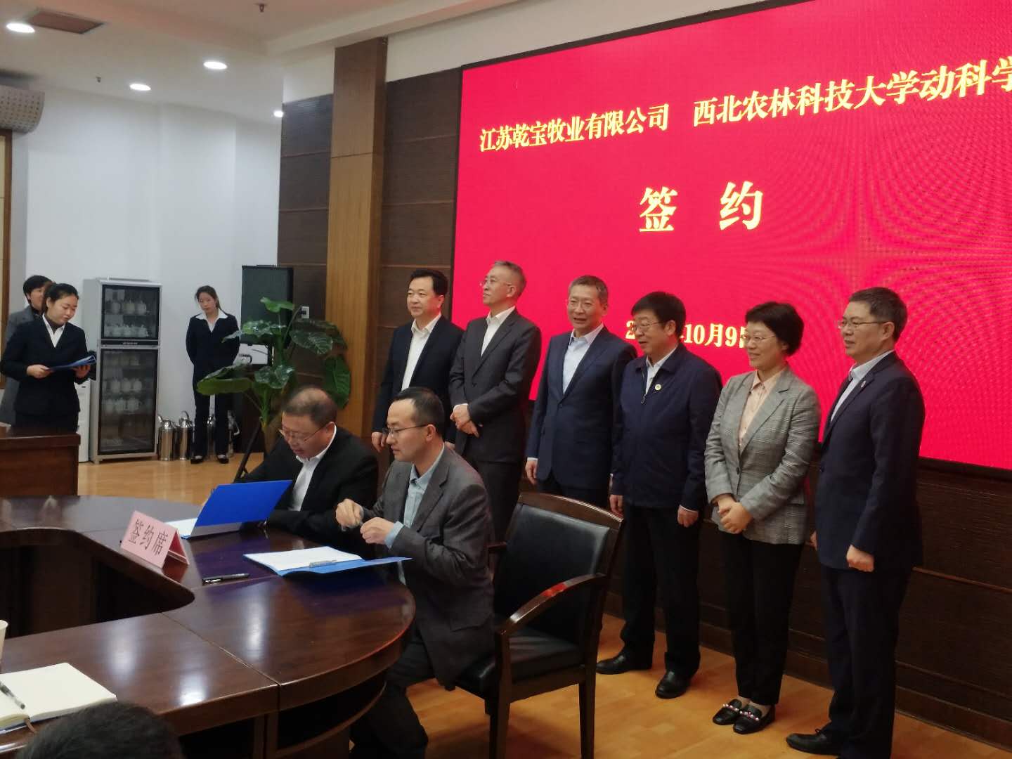 為加強和深化校地與校企合作,充分發(fā)揮地方政府、高校與企業(yè)各自優(yōu)勢,協(xié)同推進創(chuàng)新成果轉(zhuǎn)化和產(chǎn)業(yè)創(chuàng)新發(fā)展,同時促進校地和校企合作培養(yǎng)人才,10月9日上午,鹽城市委書記、人大主任戴源同志率領鹽城市農(nóng)業(yè)龍頭企業(yè)代表團赴西北農(nóng)林科技大學考察,并舉行校地科教合作座談會暨簽約儀式。江蘇德?lián)渲枪俜骄W(wǎng)站科技發(fā)展集團有限公司董事長、江蘇德?lián)渲枪俜骄W(wǎng)站牧業(yè)有限公司董事長王躍程、總經(jīng)理蔣柏林隨團參加了考察和簽約活動。王躍程董事長代表公司與西北農(nóng)林科技大學動物科技學院簽訂了合作協(xié)議。