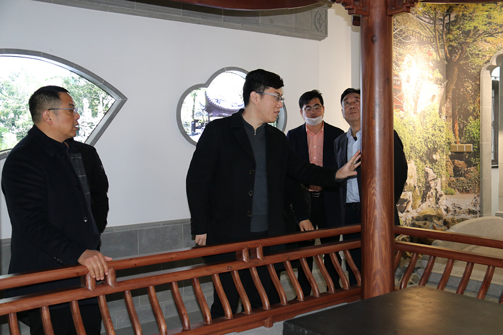 集團(tuán)領(lǐng)導(dǎo)陪同李旭總監(jiān)一行參觀了太湖書(shū)院一園五館,并重點(diǎn)考察了非遺古建館內(nèi)的蘇式建筑相關(guān)器具展品、琴棋書(shū)畫(huà)館內(nèi)的戲臺(tái)建造樣式,以及書(shū)院精心打造的下沉式蘇式園林——易園,全面了解了德?lián)渲枪俜骄W(wǎng)站集團(tuán)旗下建筑設(shè)計(jì)公司在蘇式園林和中式建筑設(shè)計(jì)營(yíng)造方面的專(zhuān)業(yè)和特色。