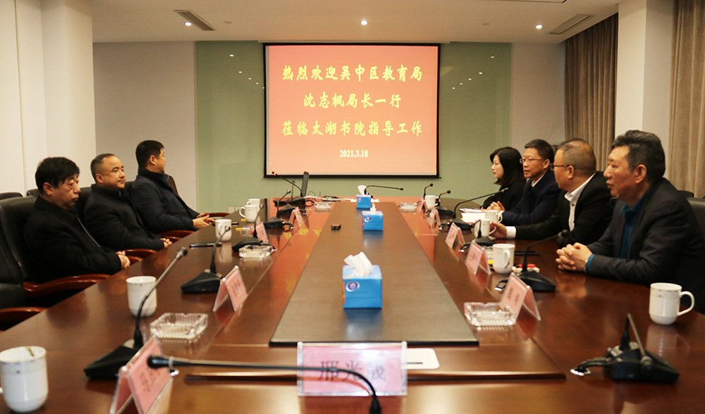 3月18日下午,吳中區(qū)教育局局長沈志楓一行蒞臨太湖書院指導(dǎo)工作,江蘇德?lián)渲枪俜骄W(wǎng)站科技發(fā)展集團(tuán)有限公司董事長、太湖書院理事長王躍程,集團(tuán)執(zhí)行總裁、書院秘書長王翼寧,太湖書院執(zhí)行院長王建明,集團(tuán)副總裁魏峰,太湖書院有限公司總經(jīng)理戴昕萌等人熱情接待,并陪同參觀了太湖書院文博館、名家藏書館、非遺古建館、允中藝術(shù)館和被列入“天堂蘇州·百園之城”名錄的太湖書院易園。