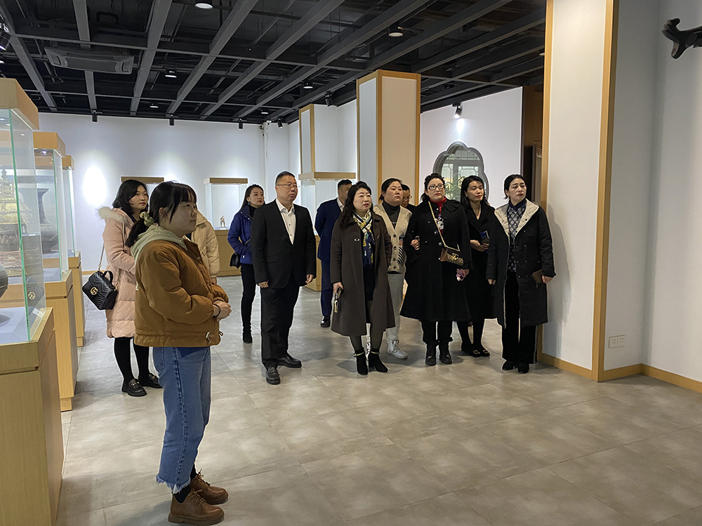 大家在工作人員的陪同下,參觀了太湖書院文博館、名家藏書館、非遺古建館、允中藝術(shù)館、琴棋書畫館等場館以及太湖書院易園。看到場館內(nèi)精美的藏品、豐富的藏書、精致的木制器具和磚雕作品,大家都表現(xiàn)出濃厚的興趣,不時(shí)駐足觀賞。