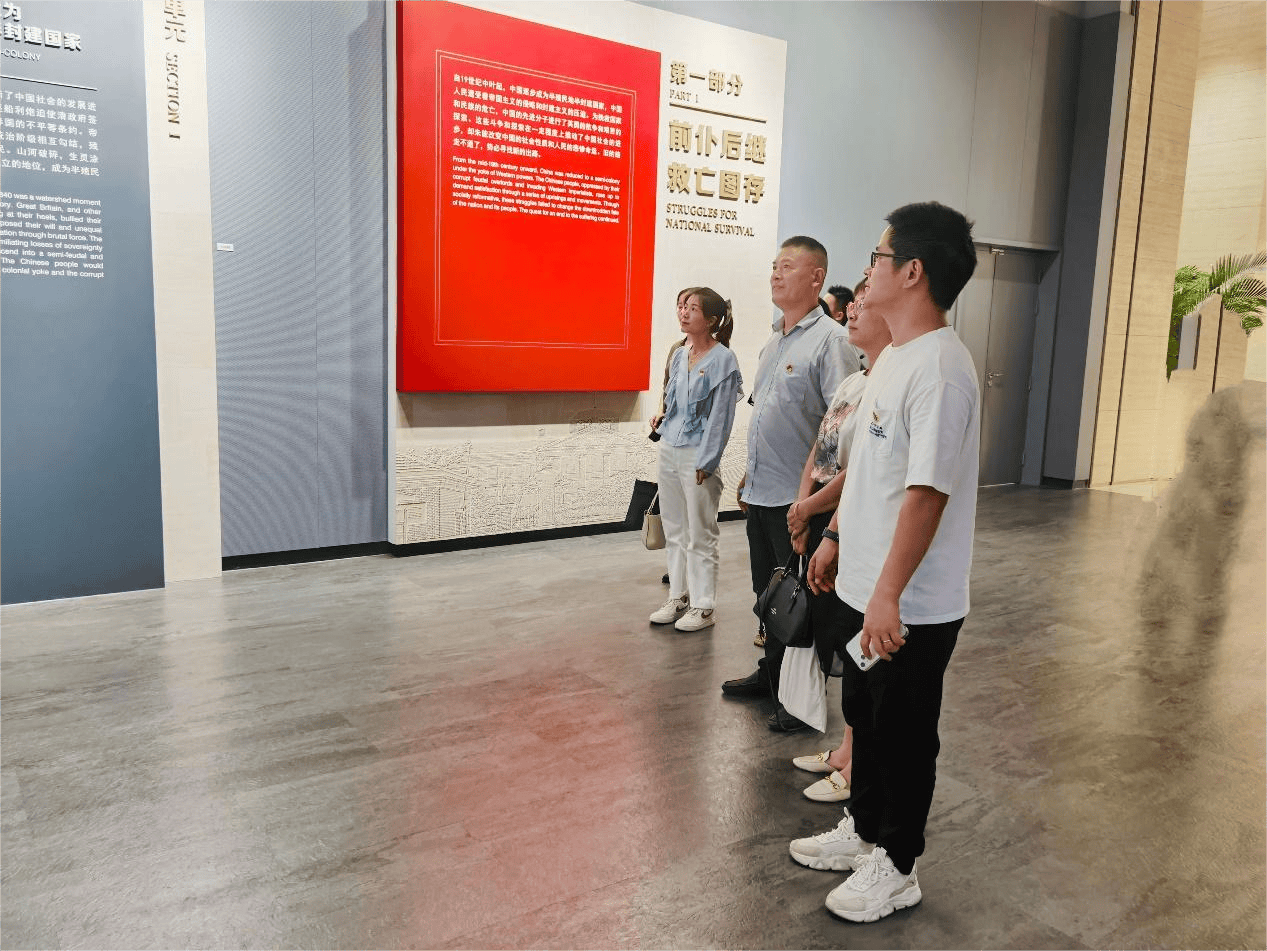 隨后,黨員們來到了與中共一大會址一街之隔的中共一大紀(jì)念館。紀(jì)念館以“初心使命”貫穿全篇的“偉大的開端——中國共產(chǎn)黨創(chuàng)建歷史陳列”展覽位于基本陳列展廳,分序廳、“前赴后繼、救亡圖存”“民眾覺醒、主義抉擇”“早期組織、星火初燃”“開天辟地、日出東方”“砥礪前行、光輝歷程”和尾廳7個板塊,通過館藏文物展示、視頻、雕塑復(fù)原、多媒體影像等多種方式生動重現(xiàn)了建黨歷程和偉大建黨精神。